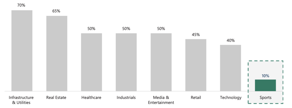 The average loan-to-value ratio across the NFL, NBA, MLB, and NHL? Just 10%. Compare that to real estate: 65%. Healthcare: 50%. Media and entertainment: 50%. Even retail, an industry that’s been struggling for years, gets financed at 45%. That’s the financing gap. And Apollo just raised $6 billion to step into it.